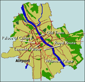 When in Warsaw, you just have to visit the Palace of Culture and Science if you want to watch the city from a bird’s view. This “gift” from the Russian leader Josef Stalin to the Polish people is a 230 metres high building in Soviet style. From a terrace on the 30th floor you will have a beautiful view over Warszawa. Walking towards the former Party Headquarters buildning, which today hosts Warsaw Stock Exchange, you may wonder what a palm is doing in the middle of the intersection, and if it is a real, living tree. It is not. This is an art piece, a humorous comment on the growing city...
